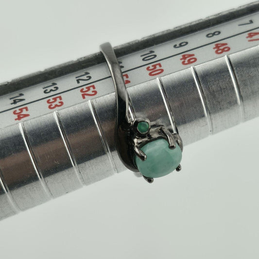 925 Ring Black Sterling Silver Emerald Sz 5.75 Oval...