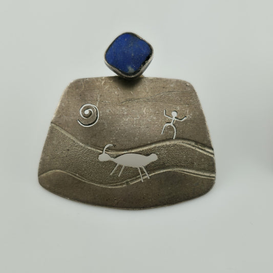 Sterling silver lapis lazuli Earrings petroglyph Native Southwestern Vintage