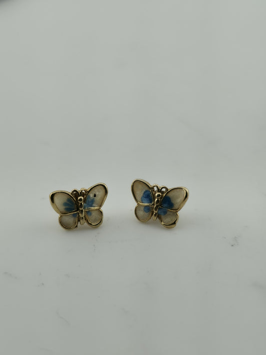 Butterflies Earrings Sterling Silver Mother Of Pearl Gold Plated Studs Dyad Ital