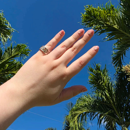 925 Sterling Silver Ring Gold Accent Botanical Design Openwork Band Size 6.50