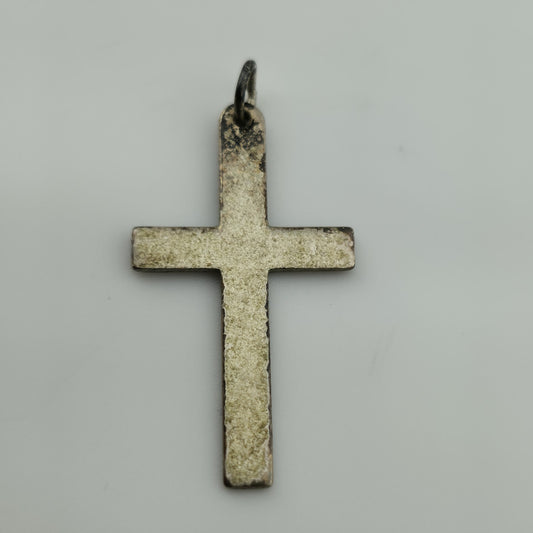 STERLING SILVER CROSS PENDANT ENGRAVED Abstract 925 Christianity Catholic Patina