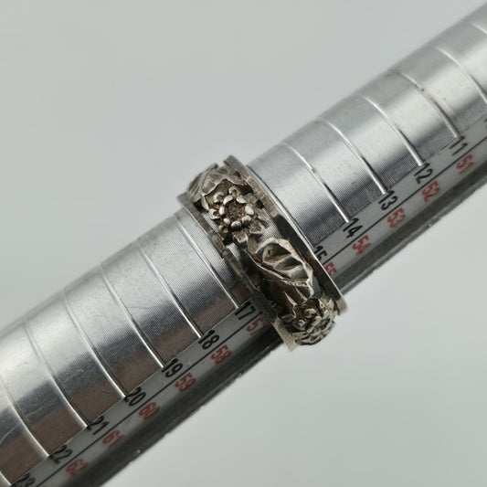 Vintage 925 Sterling Silver Floral Open Work Band Ring Size 7.5 Boho Statement