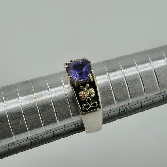 Black Hills Gold Ring Amethyst sterling silver 12k Gold Leaves Size 10 Vintage