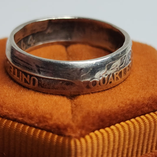 1964 Quarter Dollar Coin Ring Size 8 90% Silver Handmade Ring Tested USA Vintage