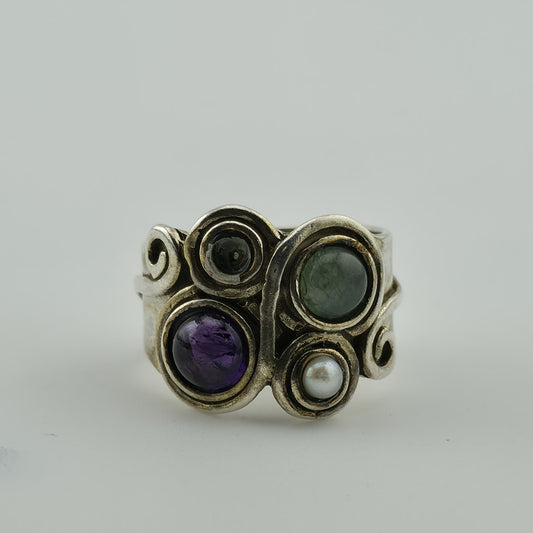 Sterling Silver Multi Stone Ring Sz 5.5 Amethyst Pearl Gem Artisan Missing Stone