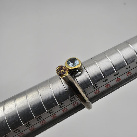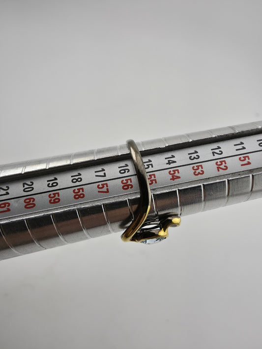 925 Sterling Silver Natural Blue Topaz Ring Size 6.75 two tone bypass