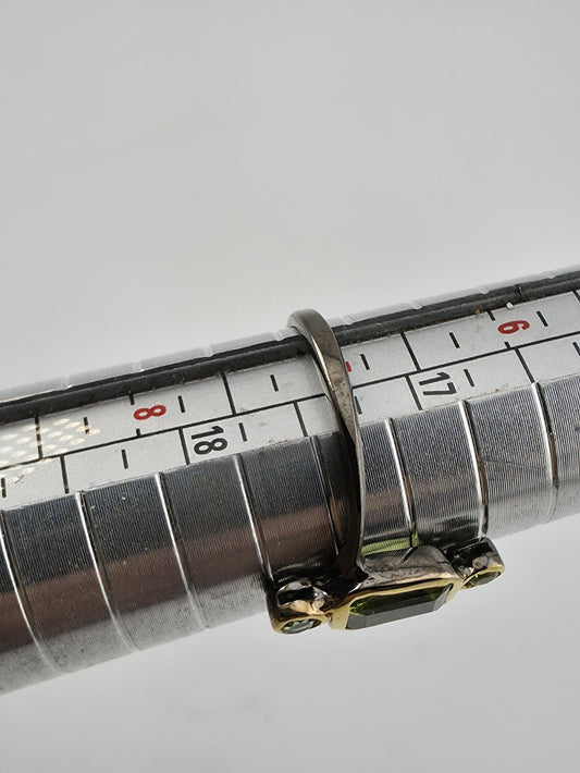 925 Sterling Silver ring Natural Green Peridot Ring Dainty Two Tone Size 7