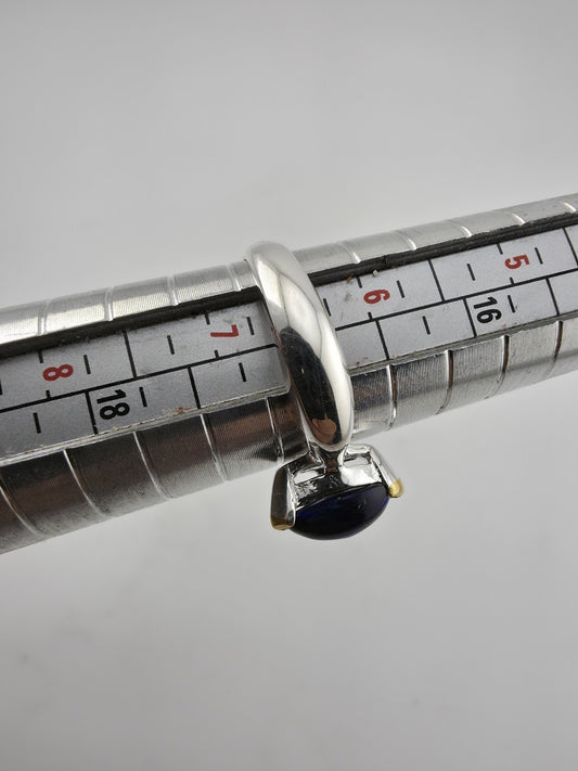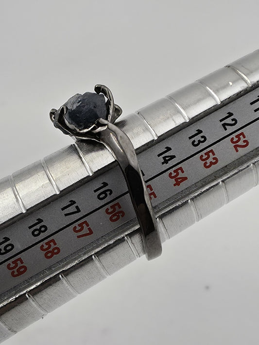 925 Sterling Silver Raw Rough cut Natural Blue Sapphire Ring Size 7.75