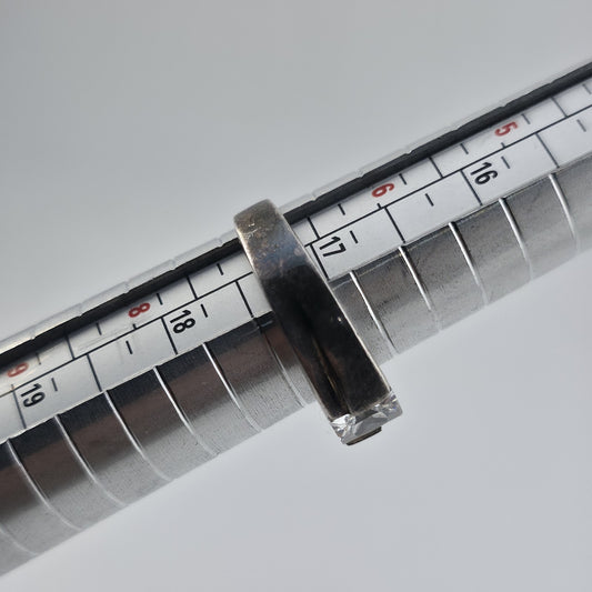 Sterling Silver Ring Solitaire Colorless Stone Size 7 Patina 925