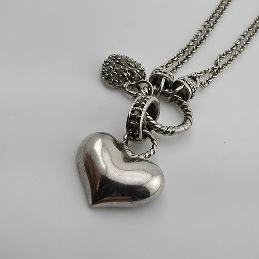 Dee Berkley Signed Heart Pendant Necklace 925 Sterling White Gemstone Chips 7.6G