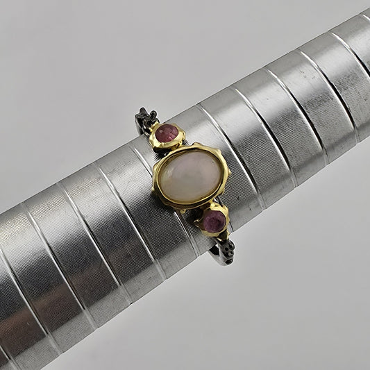 925 Sterling Silver Ring Natural Opal Abstract two tone Size 7
