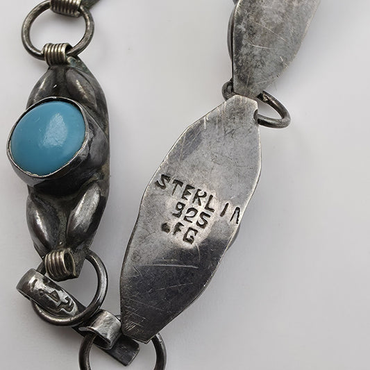 Vintage Mexican JFG Sterling Silver & Turquoise SHADOW BOX Link Bracelet 6.5