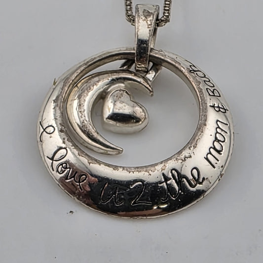 I Love You To The Moon and Back Necklace 925 Sterling Silver Heart Swirl Patina