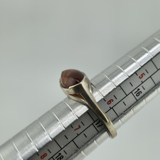 Baltic Amber Sterling Silver Ring Oval Stone Geometrical Modernist 6.5 Polish