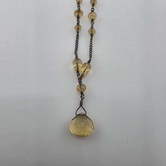sterling silver Necklace 16 Inches Yellow Glass Beads Vintage
