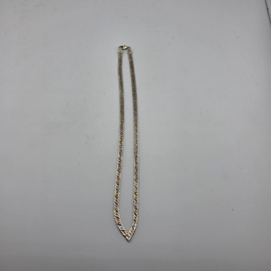 Sterling Silver Necklace 925 Tri Color Silver Gold Rose V Neck Chain 16 Vintage