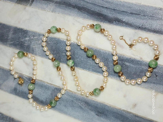 Pearl Jade Gold Beaded Necklace 30" 12K GF Beads 10K Gold Clasp Vintage