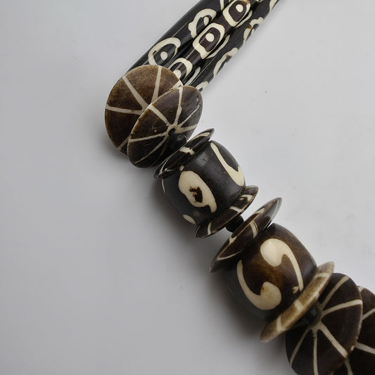 Tribal Necklace Tibetan dZi African Batik Beads Vintage 30in