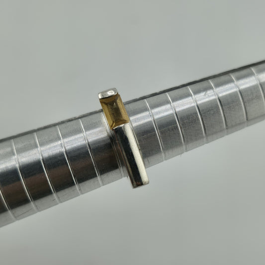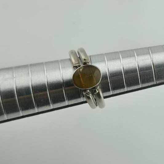 Sterling Silver Ring Yellow Stone Horizontal Med Century Vintage 5.75 Unique