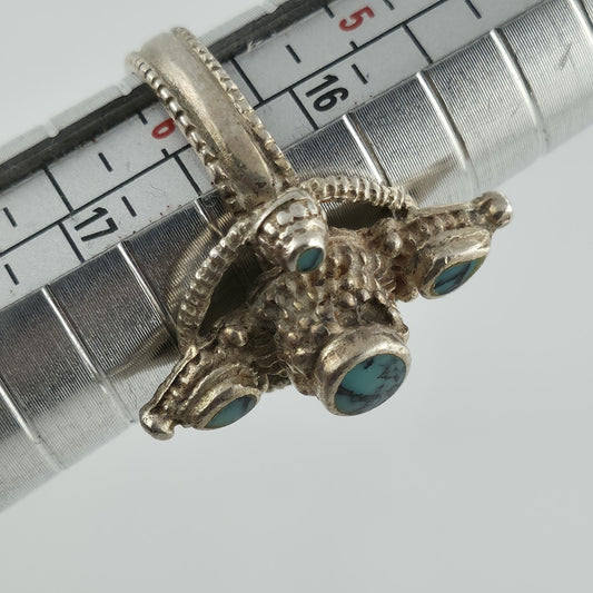 925 Sterling Spinner Ring Turquoise Cross Double Sided Articulated Vintage PD 7