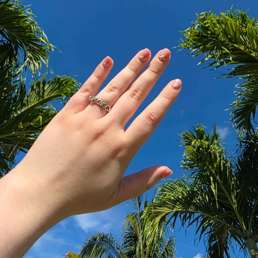 925 Sterling Silver Ring Filigree Rose Floral Band Size 9.75 Boho Romant