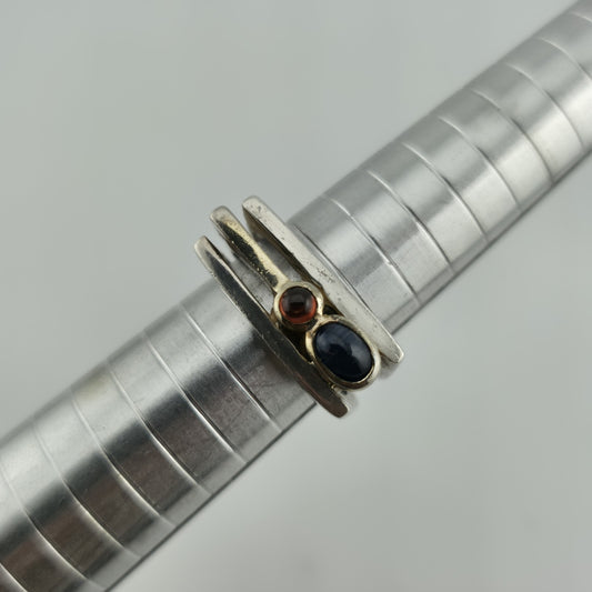 sterling Silver Ring two in one Golden Honey Amber Sky Blue Larimar size 7.5