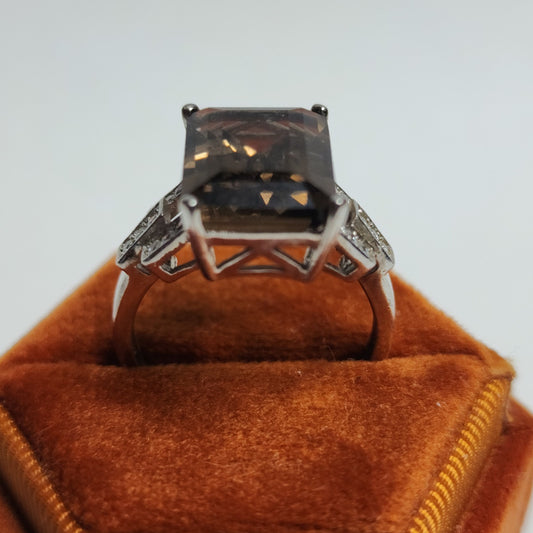 Smoky Quartz Sterling Silver Ring Art Deco Size 8 925 Statement Jewelry