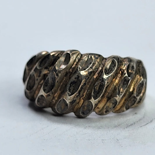 925 Sterling Silver Ring Fluted Dome Band Size 7 Aged Patina Vintage