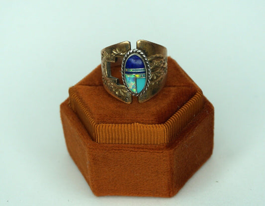 Larry Pacheco Vintage Ring 7 Sterling Silver Copper Lapis Opal Inlay Southwest