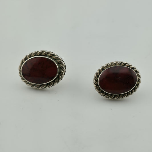 OVAL CARNELION STUD EARRINGS STERLING SILVER 925 MEXICO Vintage