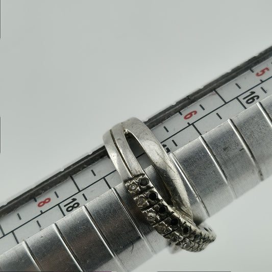 NF Sterling Silver Ring 925 Intertwined Crossover white black Stones Size 7