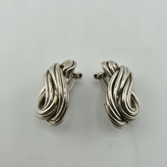 925 Sterling Silver Earrings Vintage Modernist Hollow Puff Abstract Israel Rare