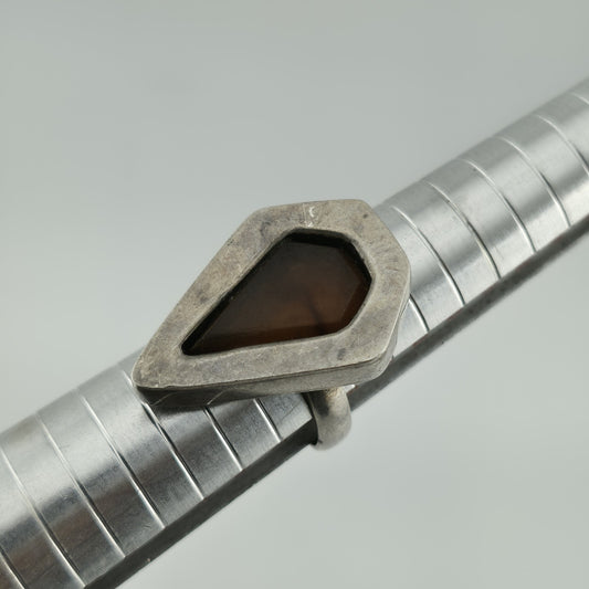 Amber 925 Sterling Silver Ring 7.5 MCM Chunky Teardrop Coffin Vintage Rare