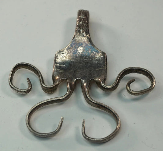 Hand Made Silverware Pendant 925 Sterling Silver Abstract Art 23.5g Vintage Fork