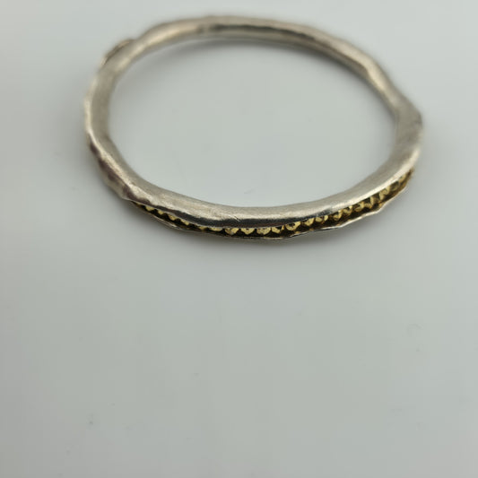 Mashka Antiqued Sterling Silver pod bangle with gold pyrite Size 2.3" Tested