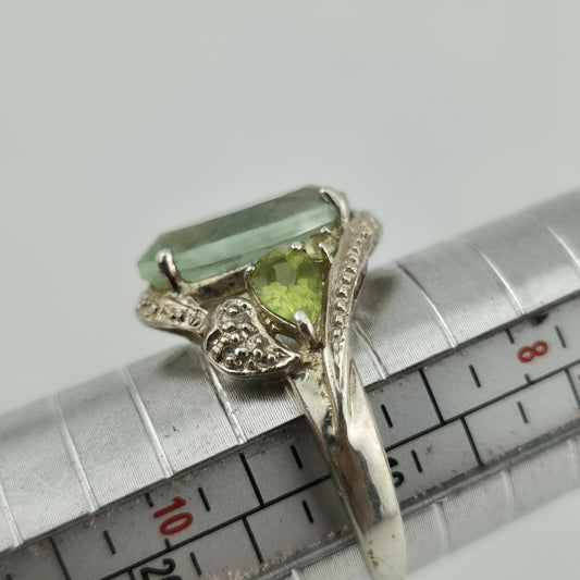 925 Sterling Silver Ring Size 9 Oval aquamarine blue / Peridot Green Stones