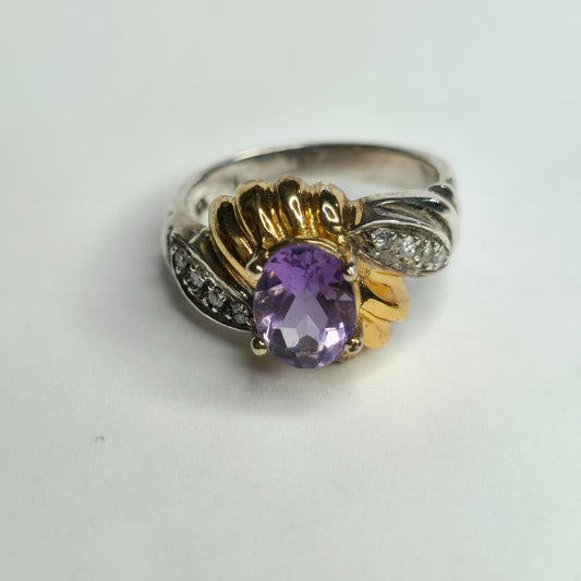 Sterling Silver 925 Ring Gold Plating Purple Amethyst YKL 6.25 Vintage