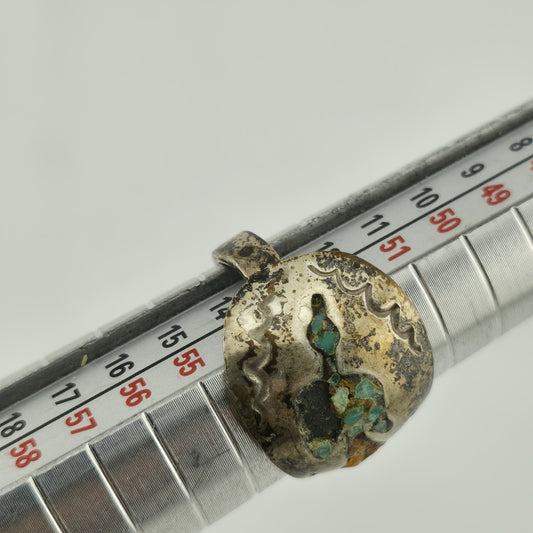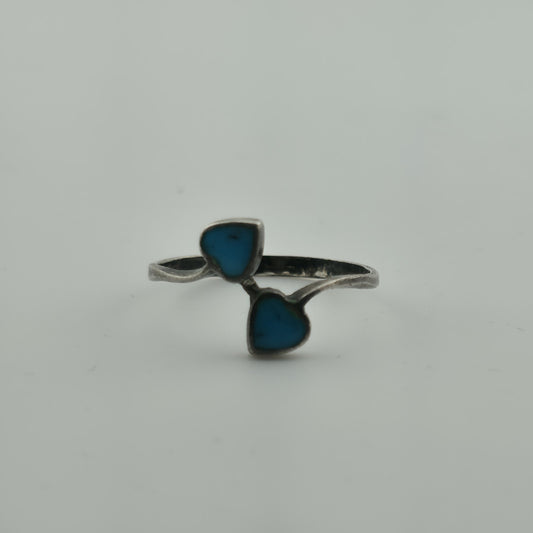 Ring Sterling Silver Tiny Crushed Turquoise Double Heart Love Size 8.50 Vintage