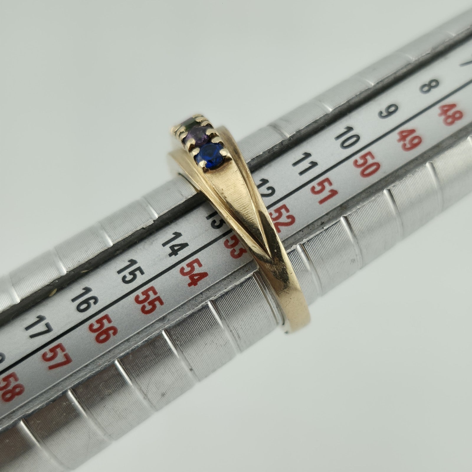 Hashtags: #GoldRing #VintageJewelry #MothersRing #RainbowRing #BirthstoneBand