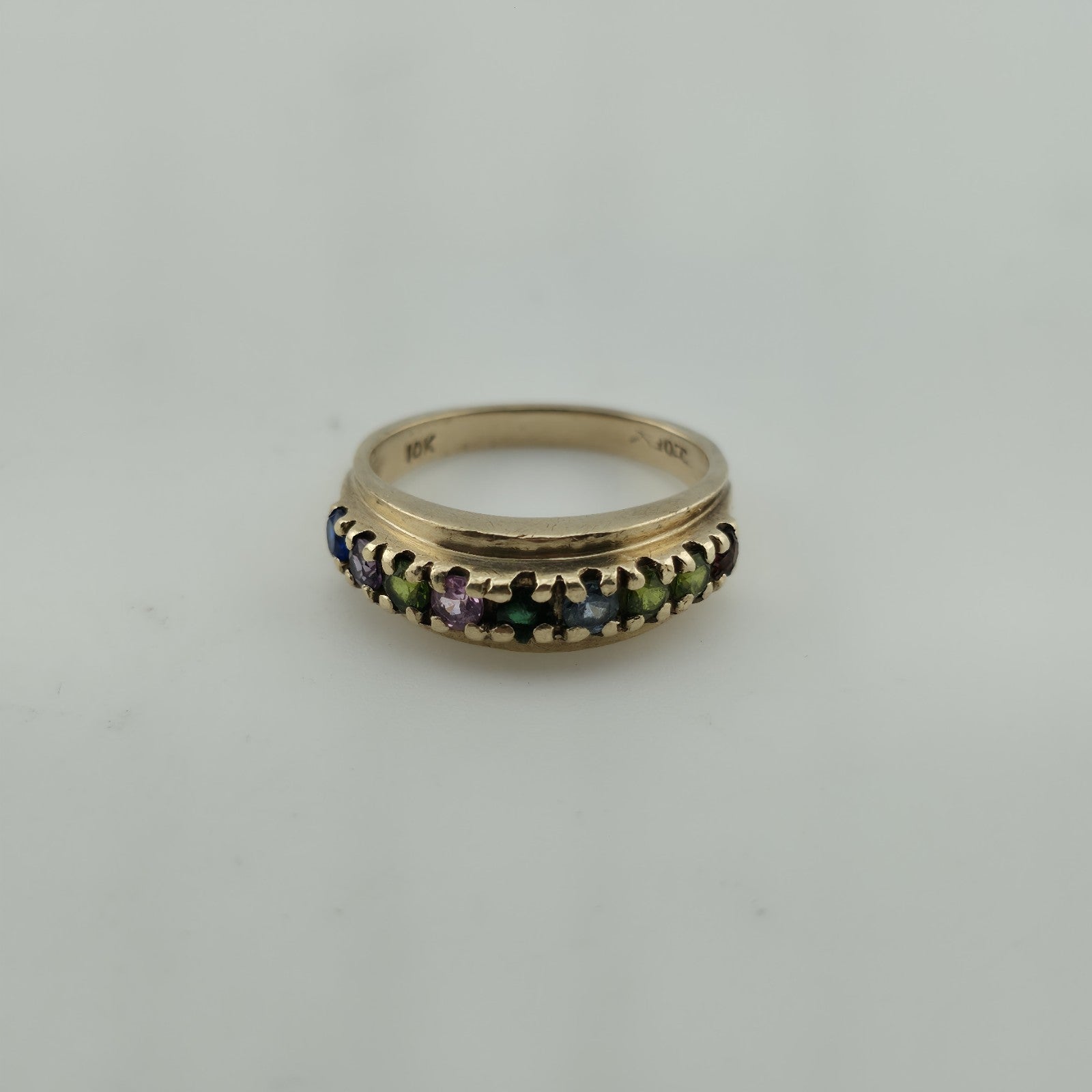 10k Yellow Gold Ring 9 Stones Rainbow Mothers Grandmother Mom Size 6 HOF Vintage