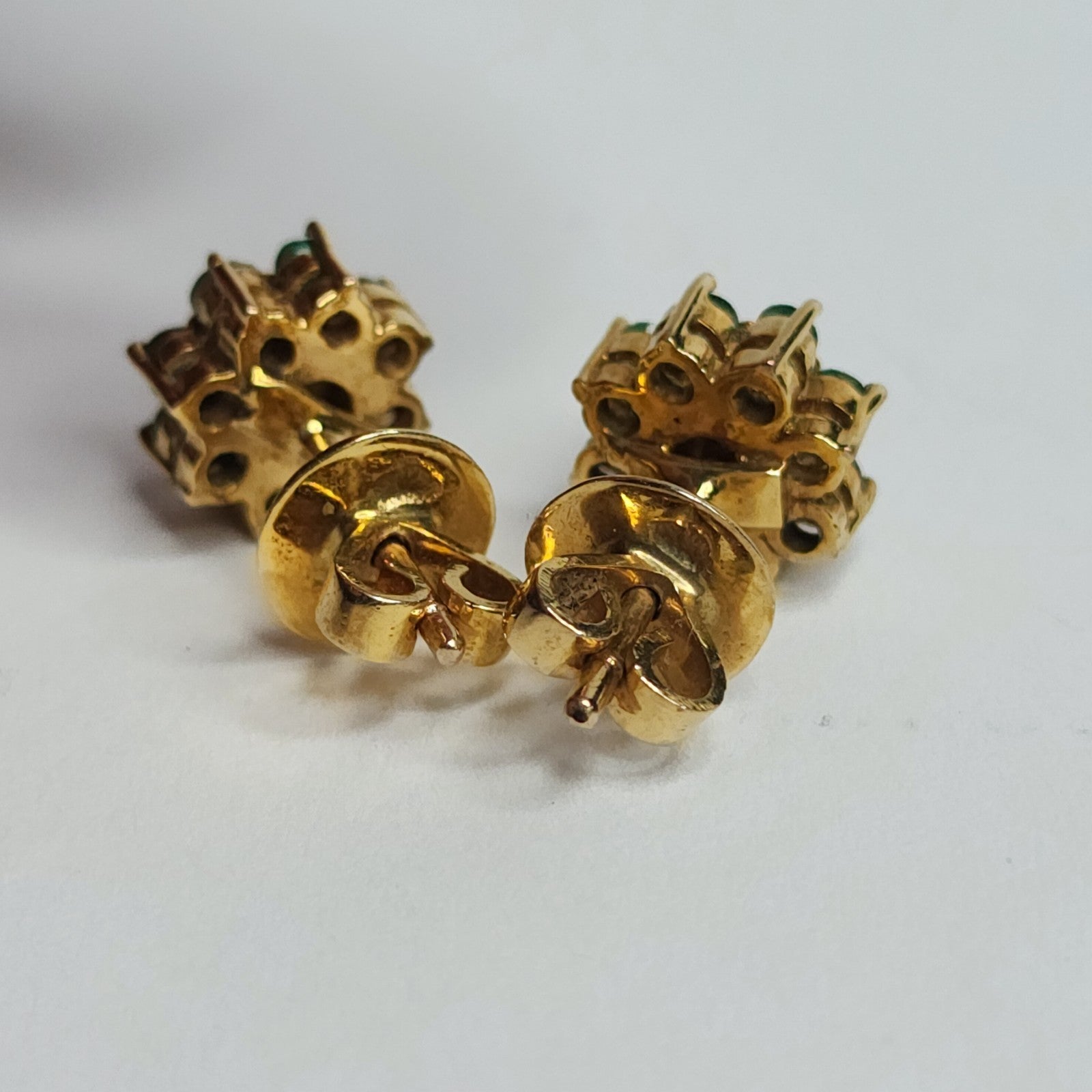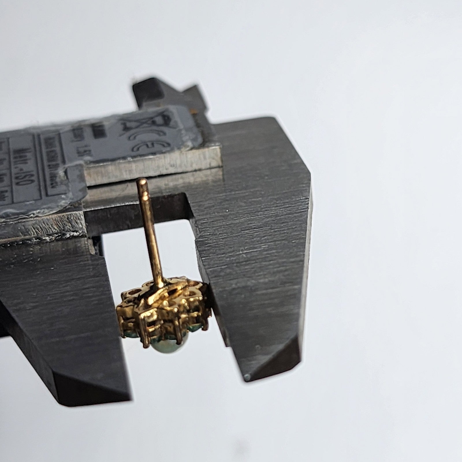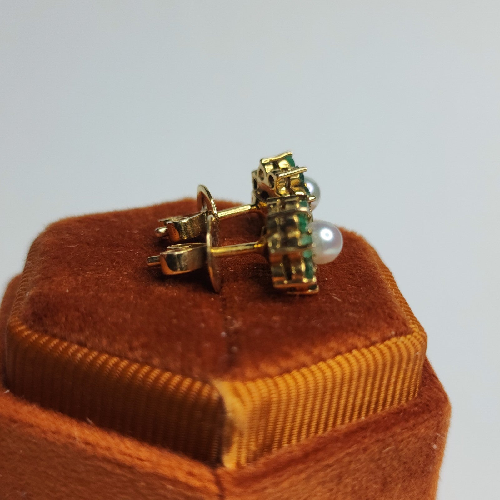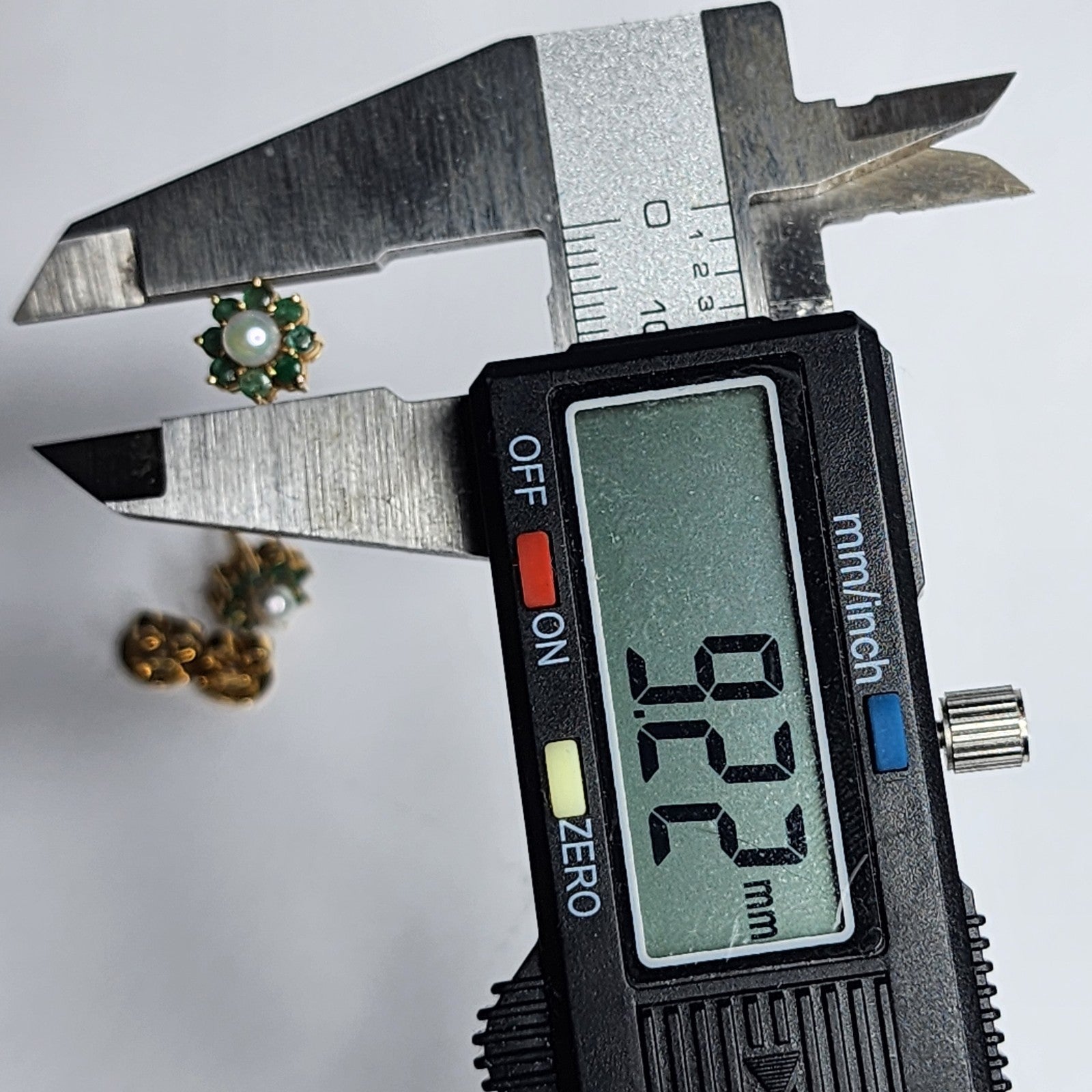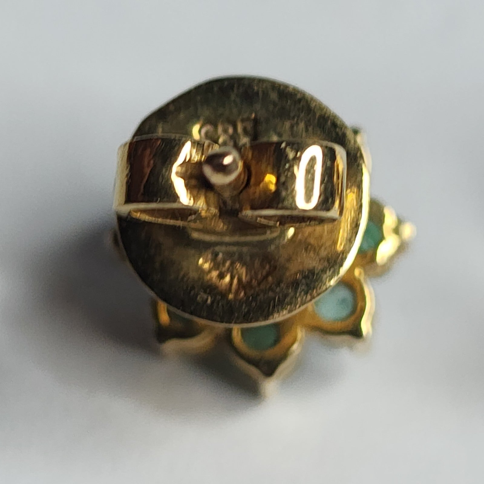14K Yellow Gold Earrings White Pearls Flower Green Stones Stud 9mm 585