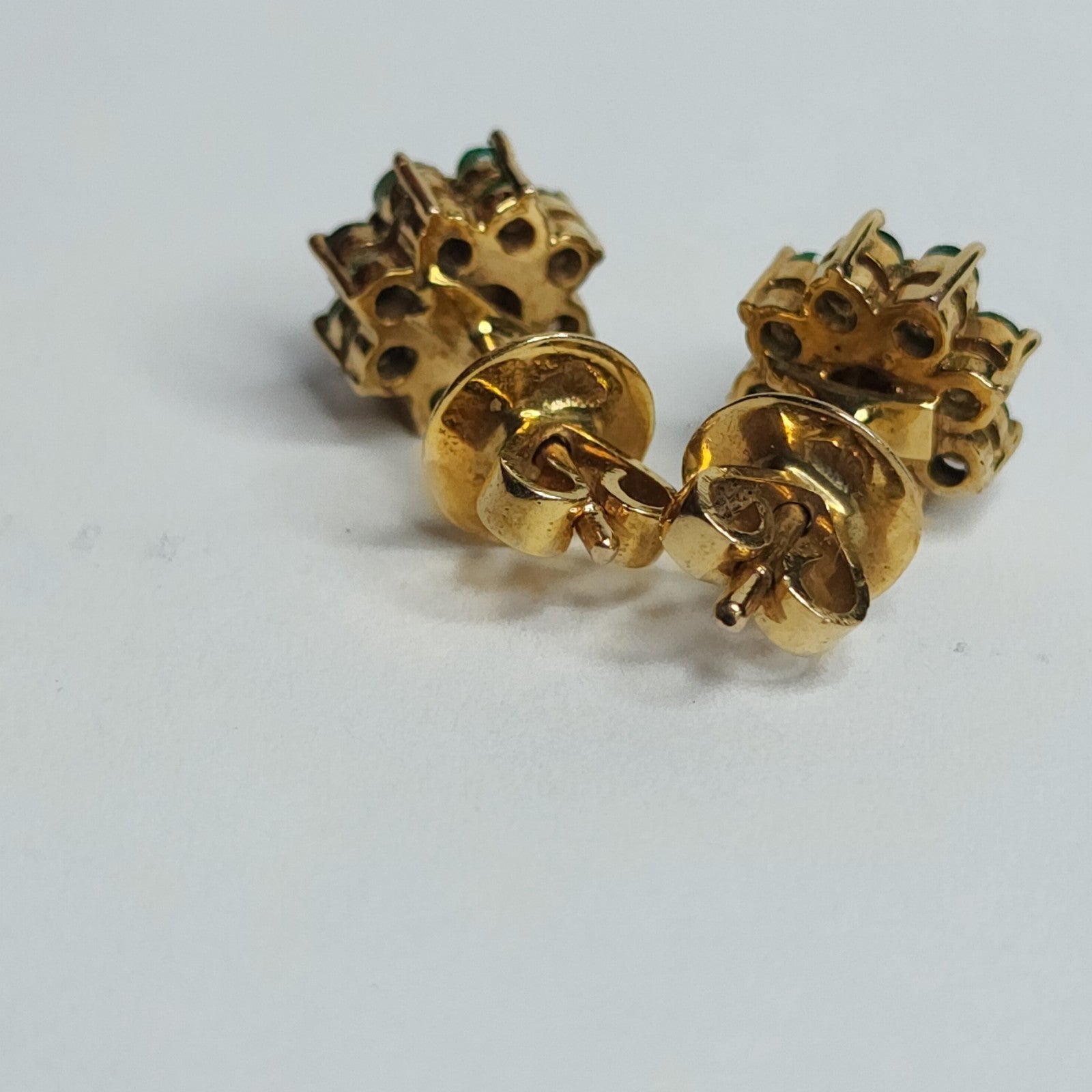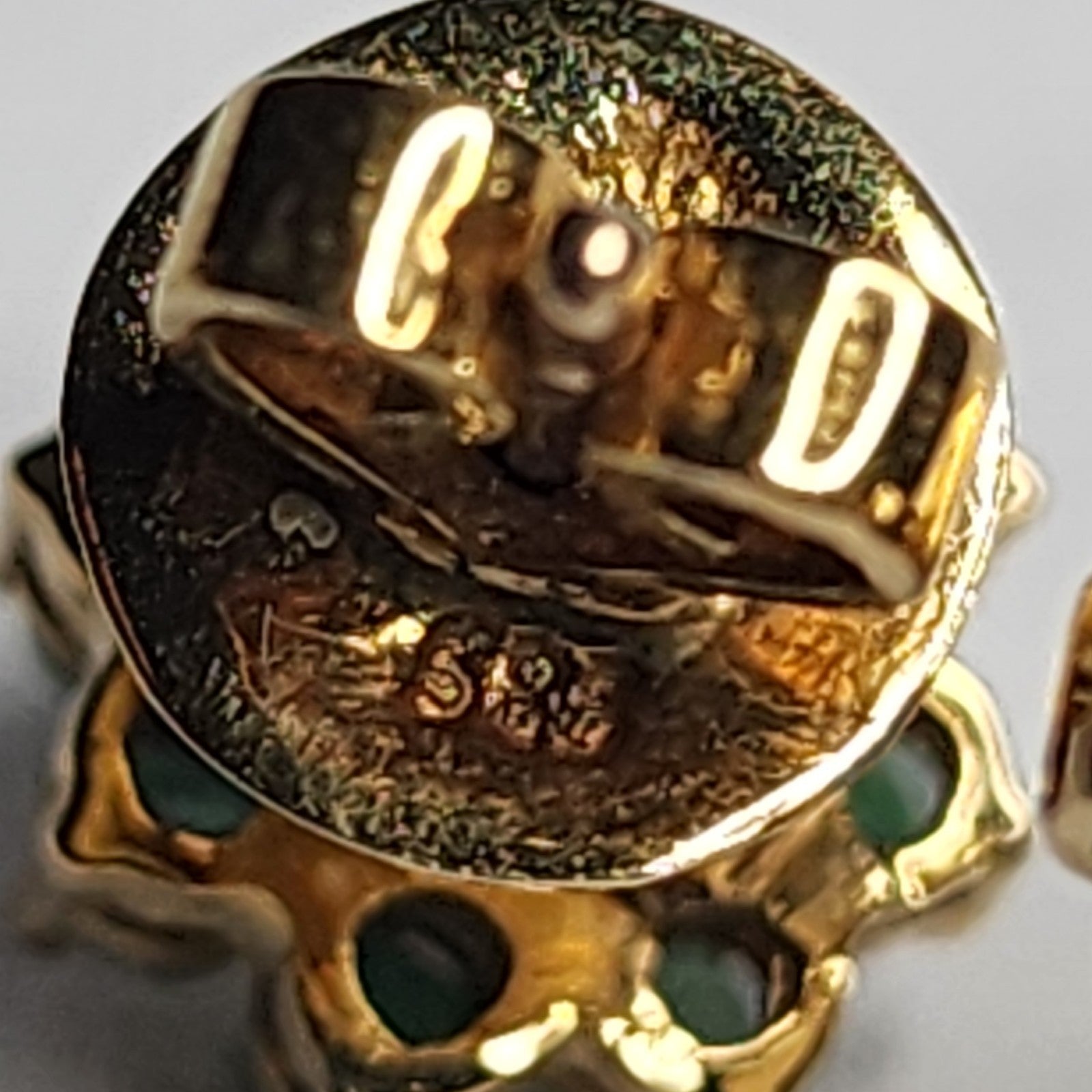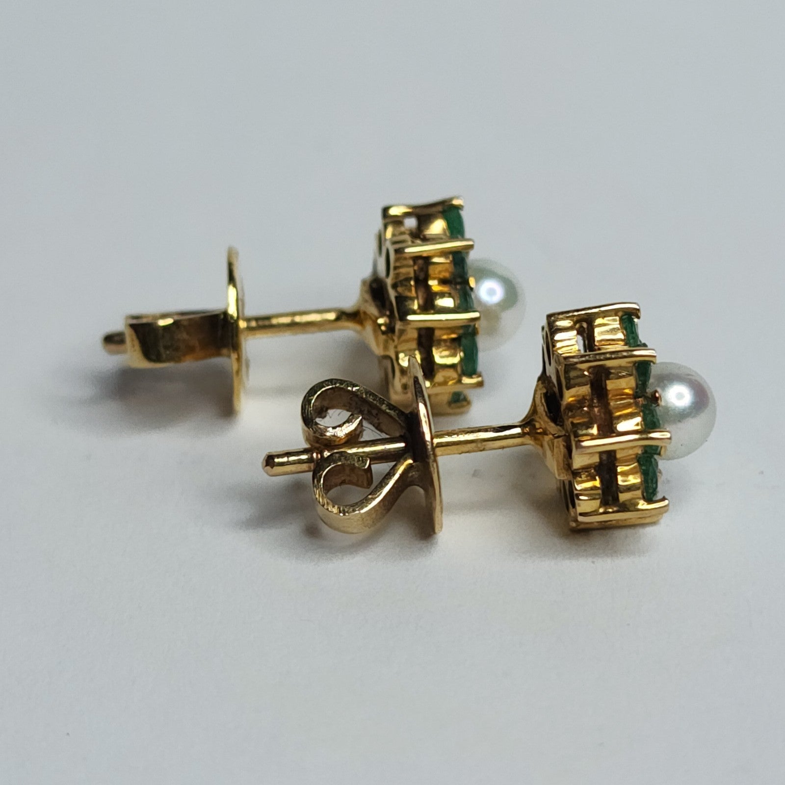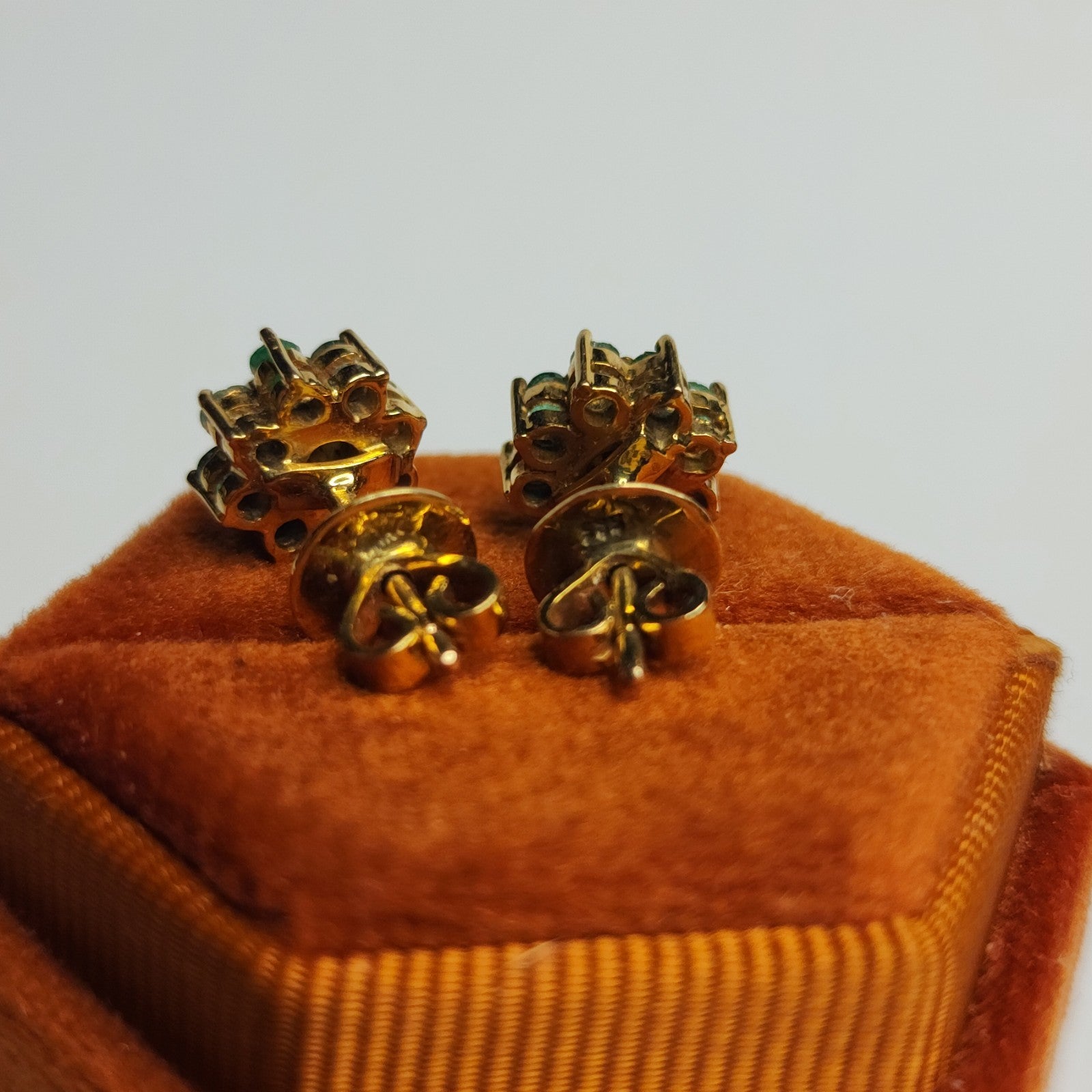 14K Yellow Gold Earrings White Pearls Flower Green Stones Stud 9mm 585