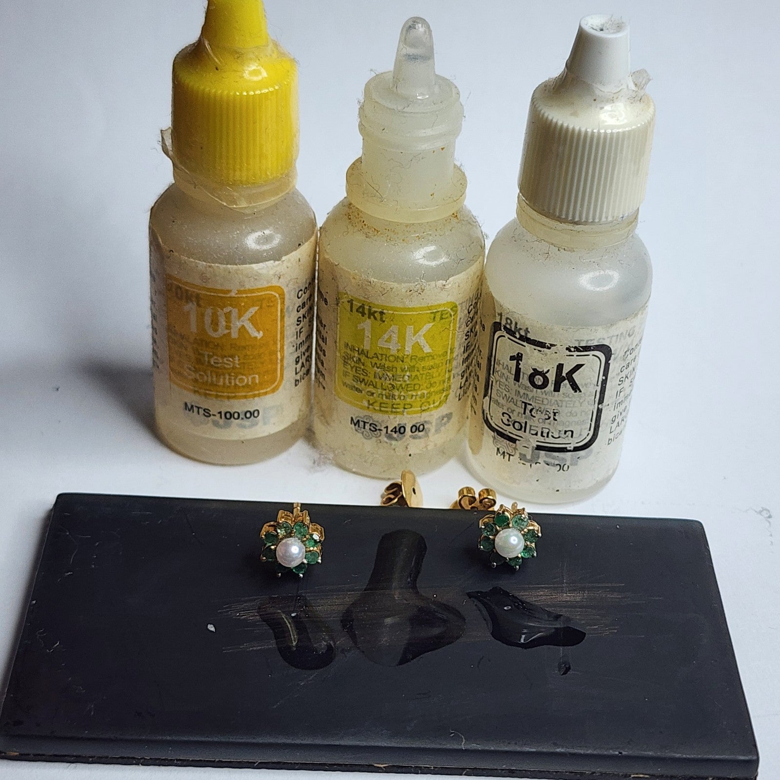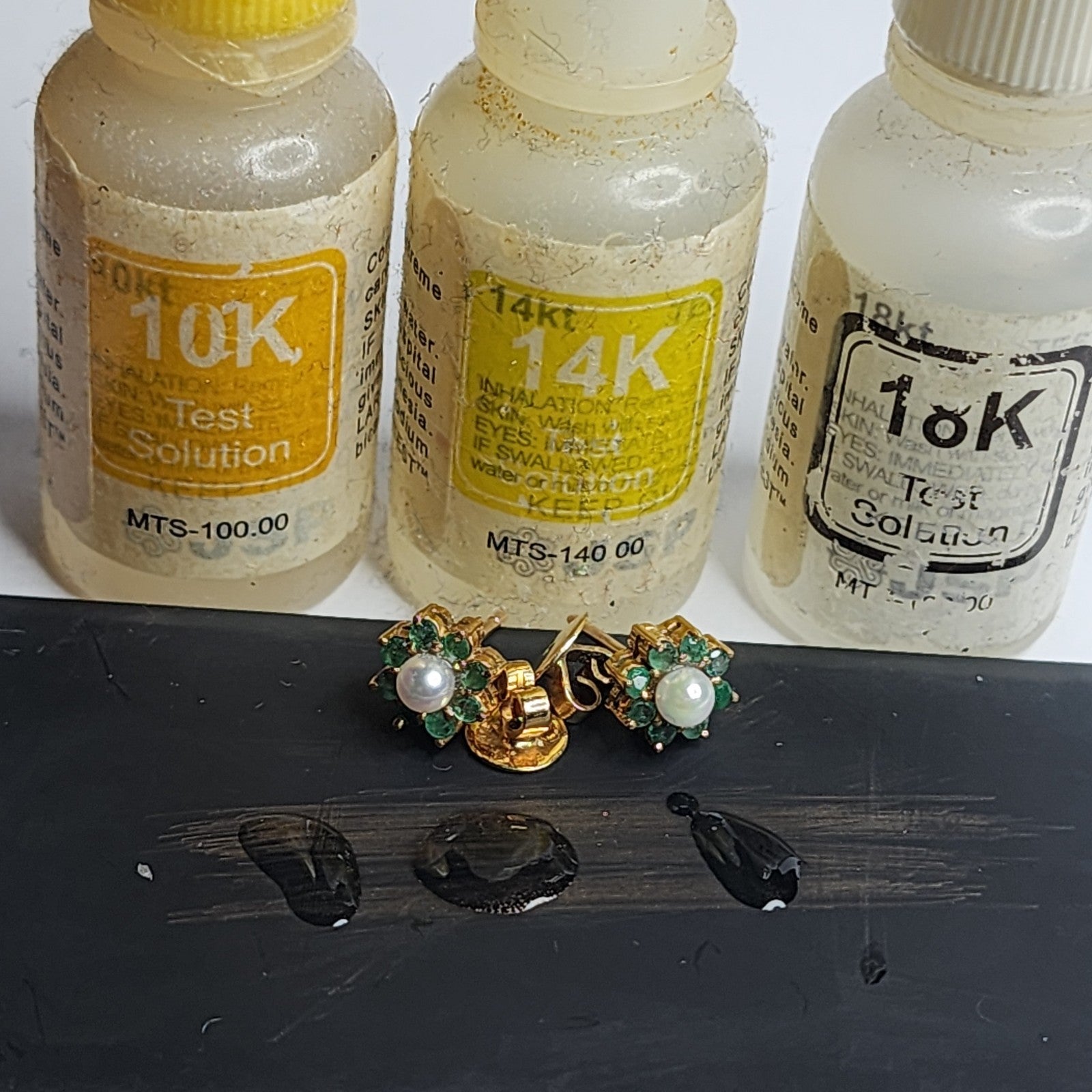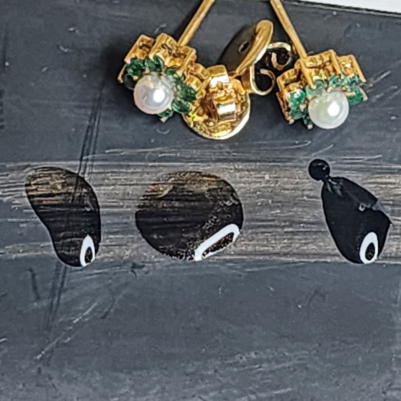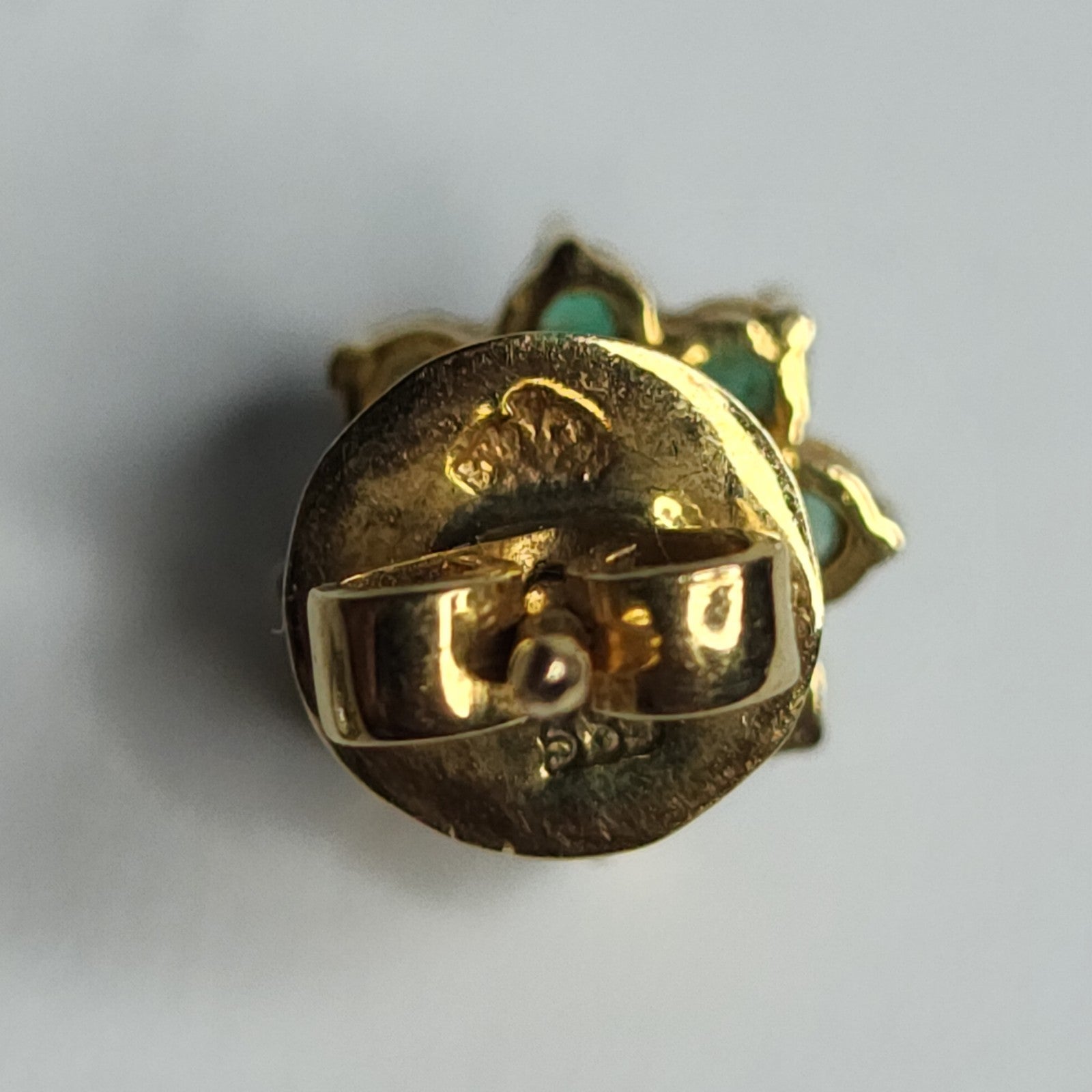 14K Yellow Gold Earrings White Pearls Flower Green Stones Stud 9mm 585