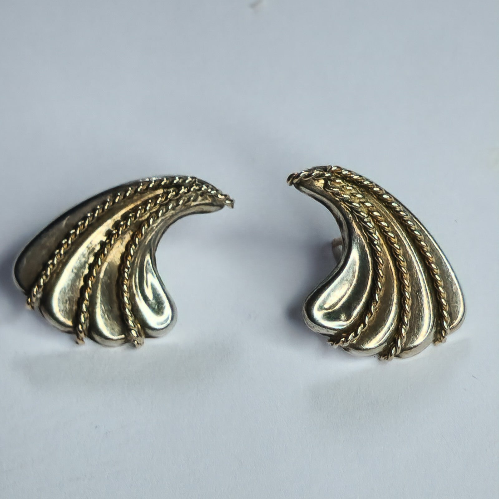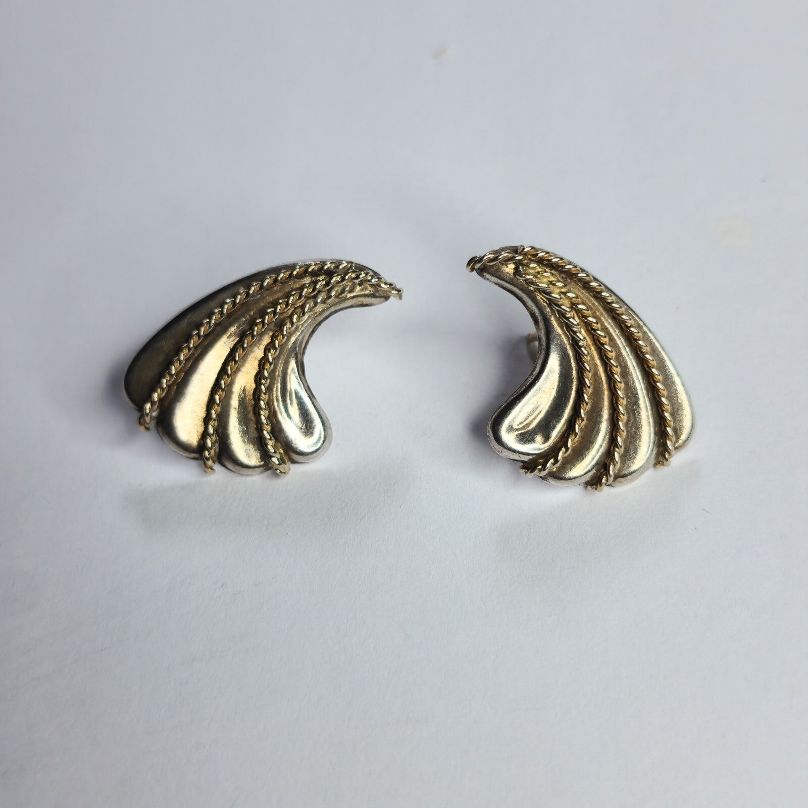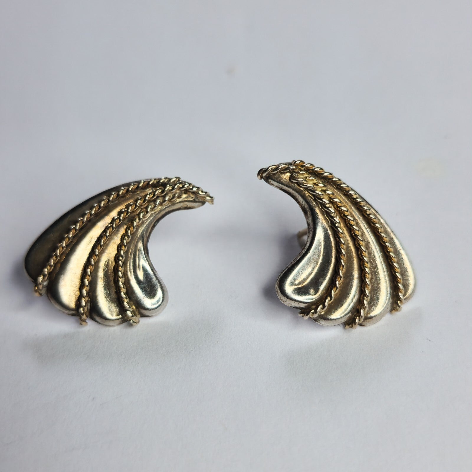 925 Sterling Silver 14k Gold Earrings Twisted Rope Wave wings fans Post Vintage