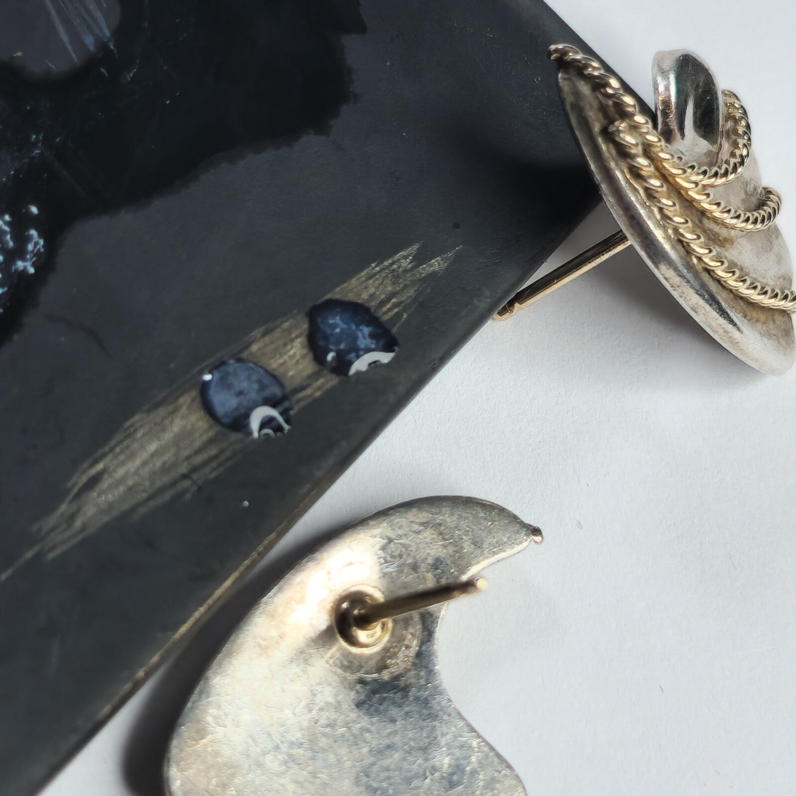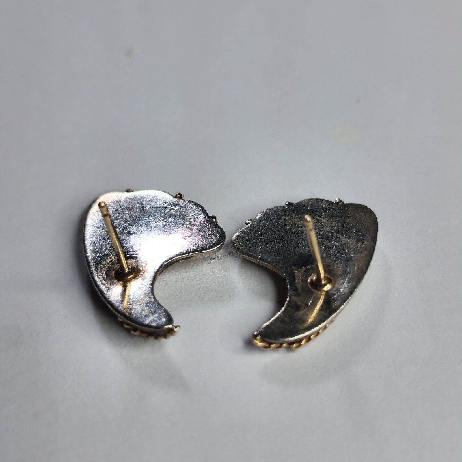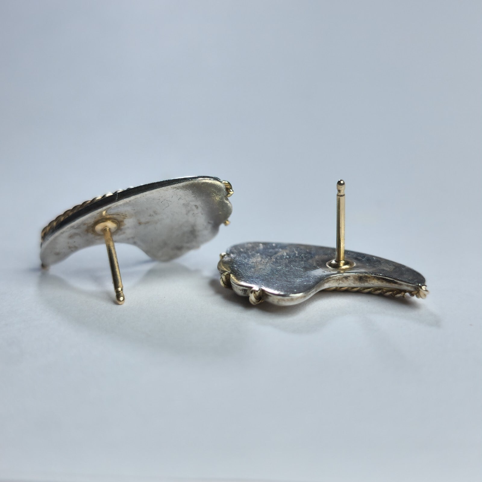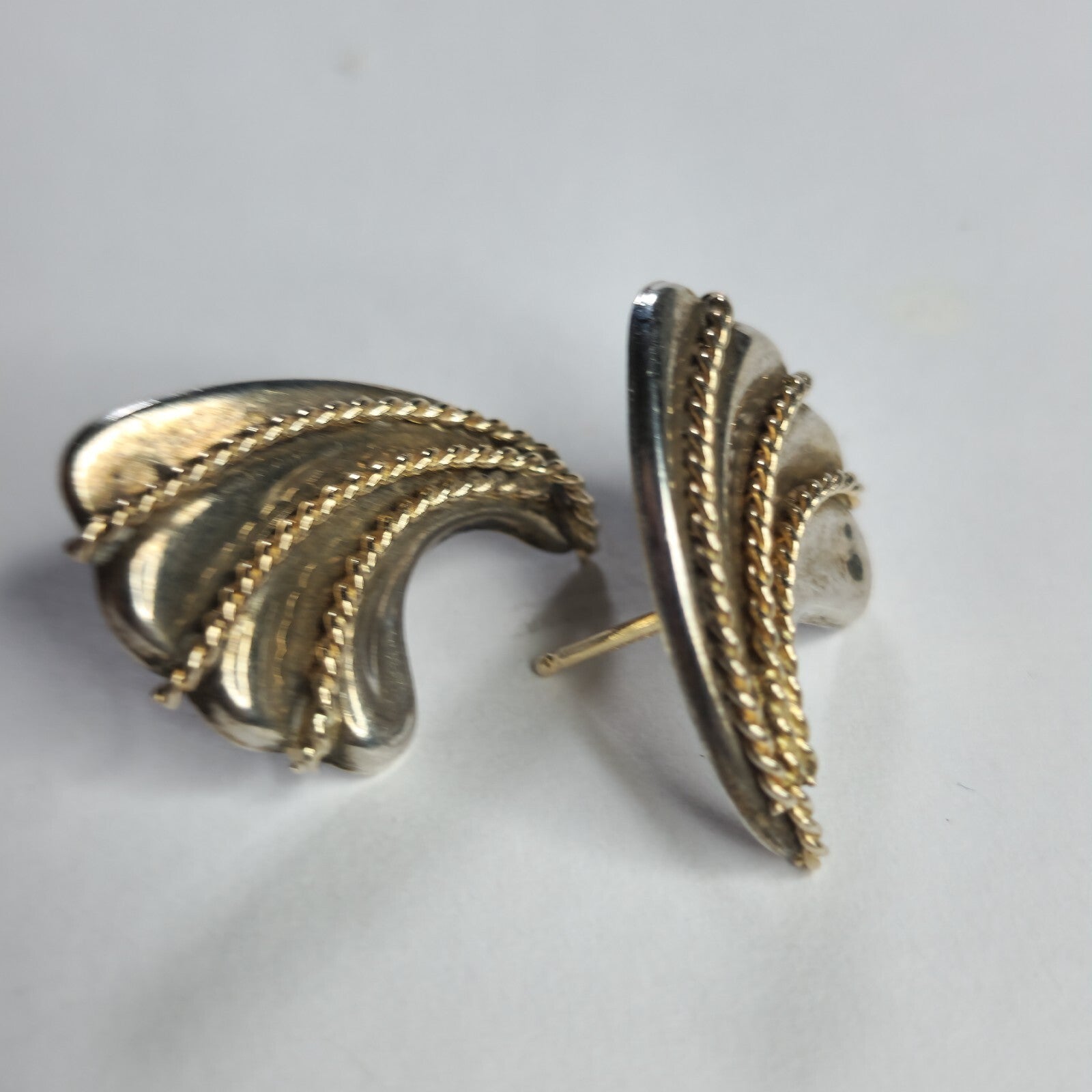 925 Sterling Silver 14k Gold Earrings Twisted Rope Wave wings fans Post Vintage