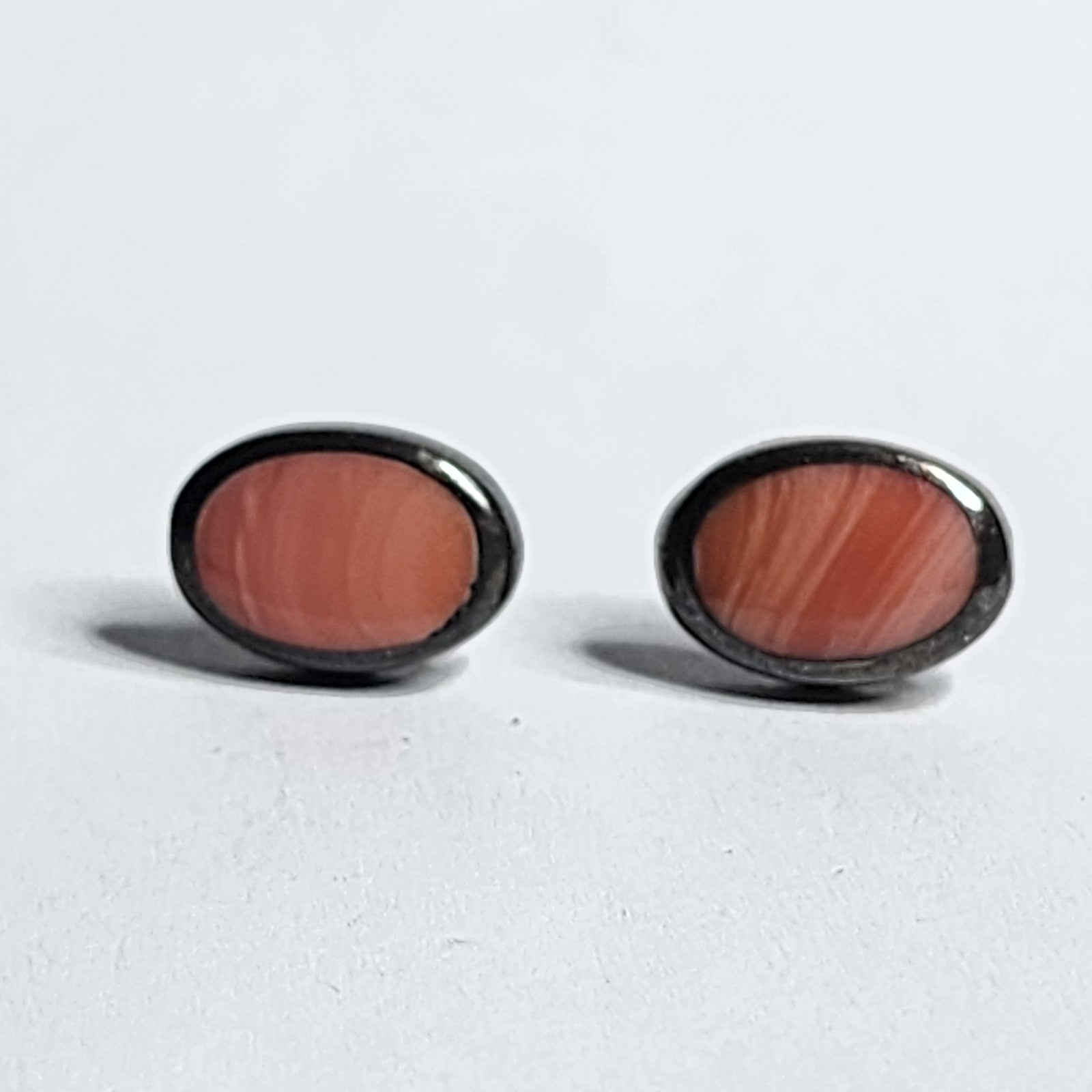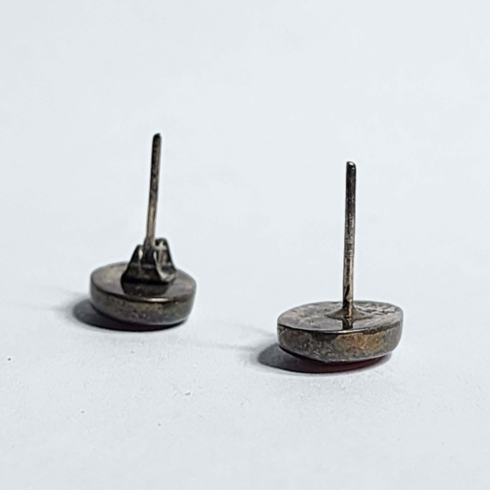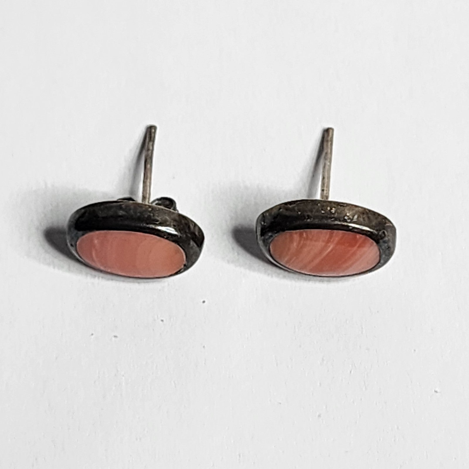 925 Sterling Silver Earrings Pink Inlay Stud tested Mexican Vintage