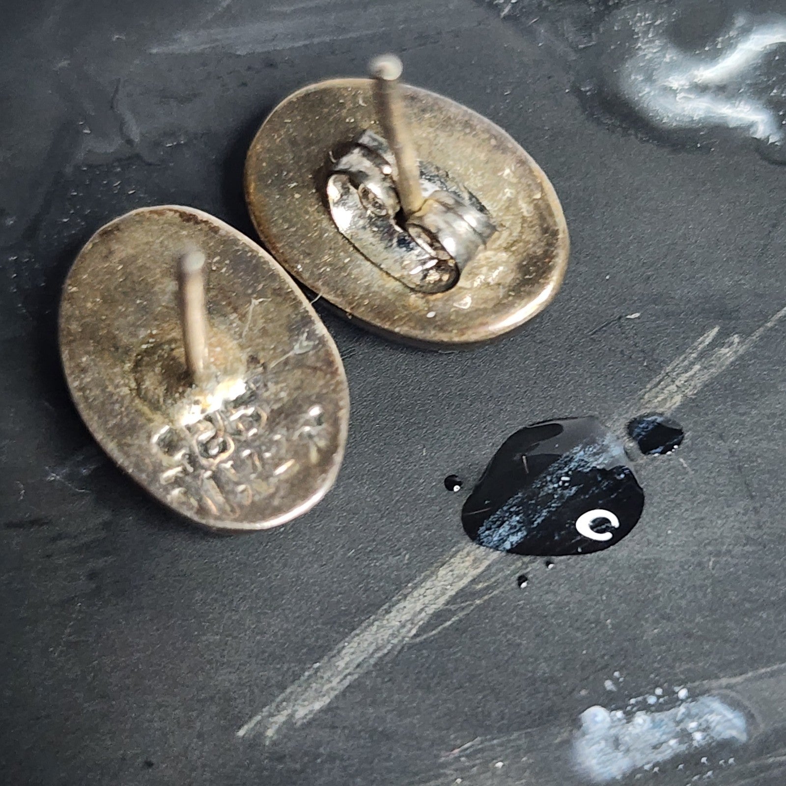 Sterling Silver Synthetic #Opal Inlay #StudEarrings. Condition is Pre-owned. Shipped with USPS First Class.