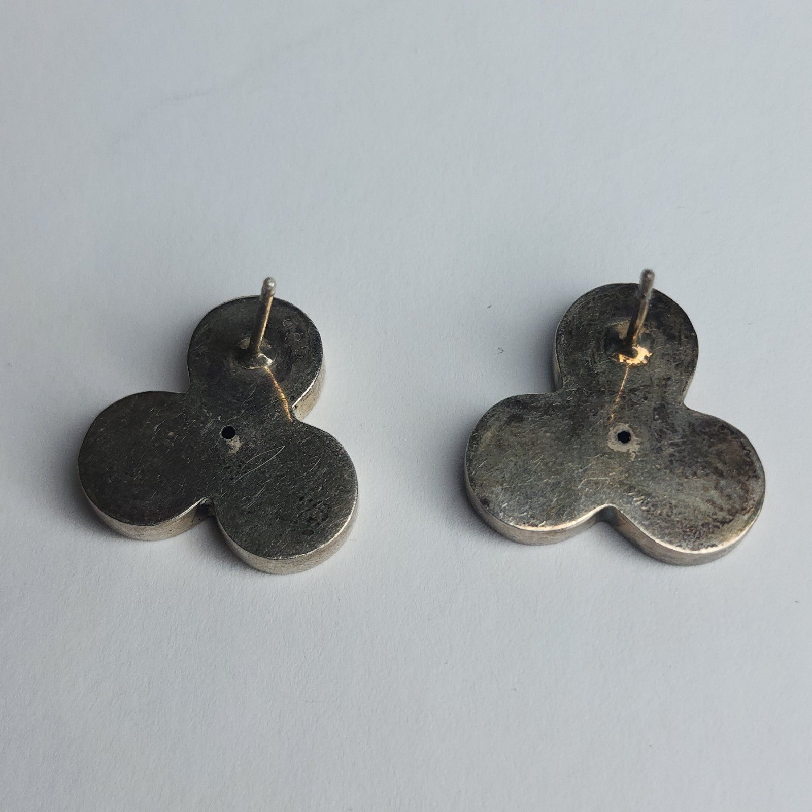 925 Sterling Silver Earrings Studs Clover Hollow tested Vintage