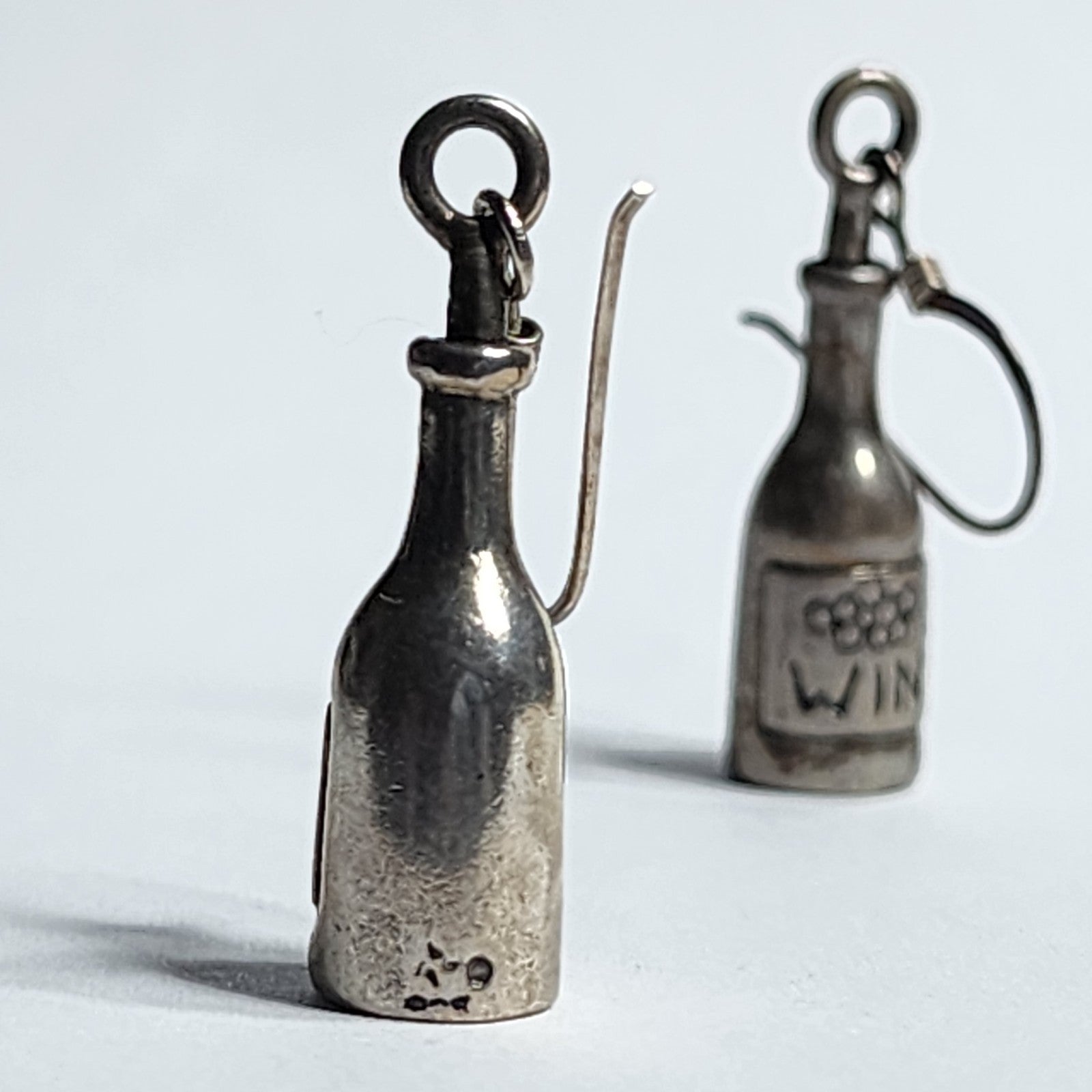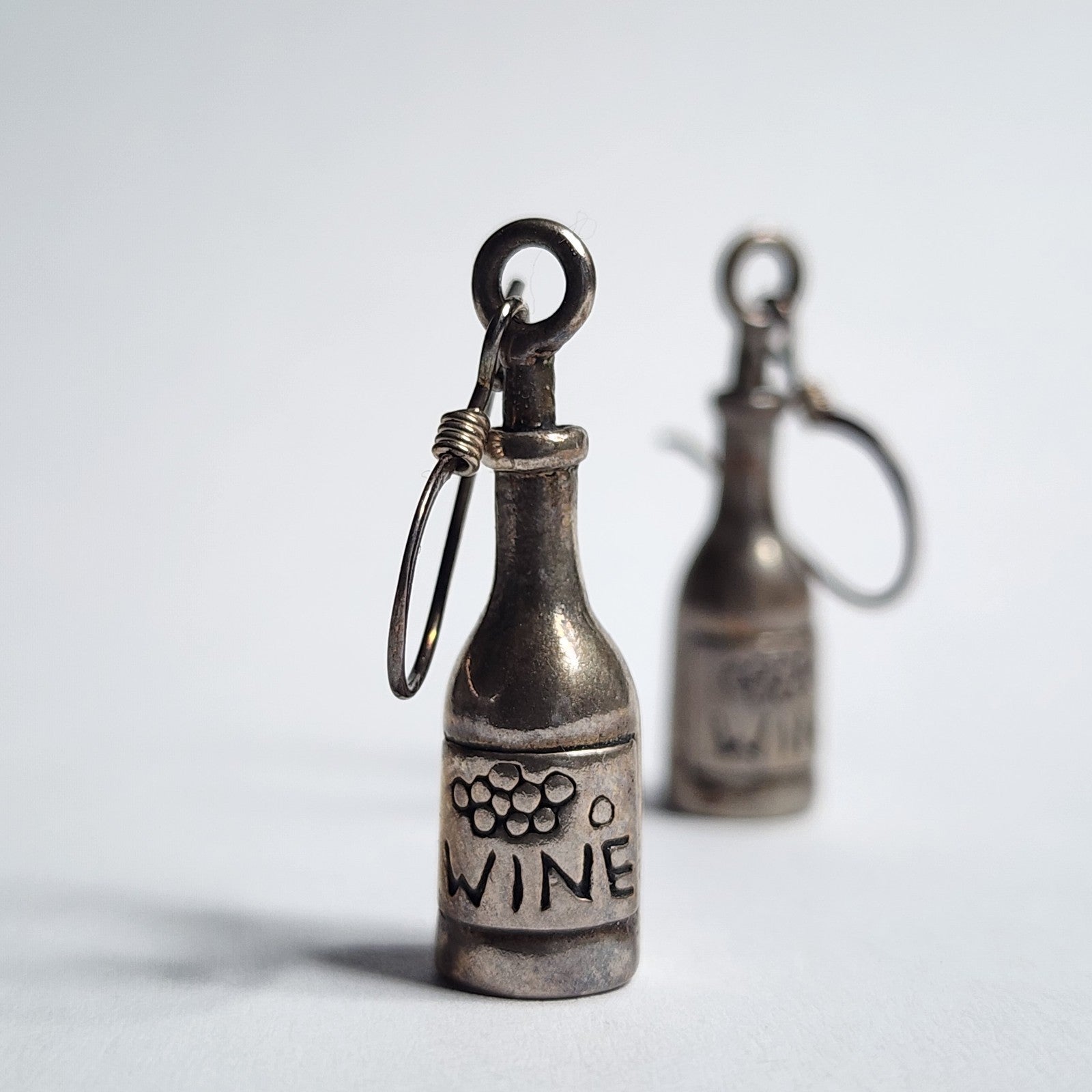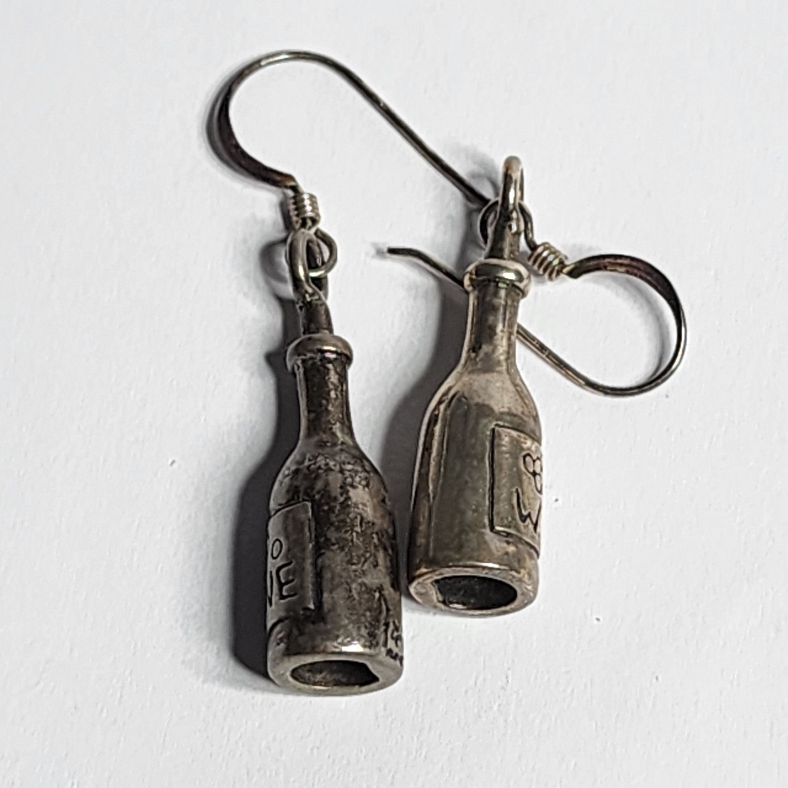 925 Sterling Silver Earrings Wine Bottles Hooks Tarnish patina Tested