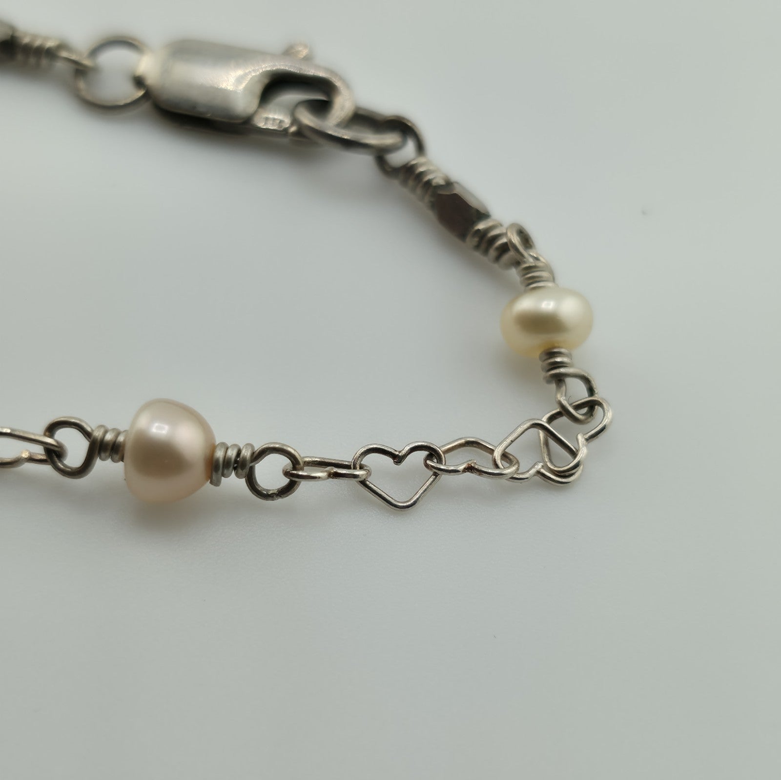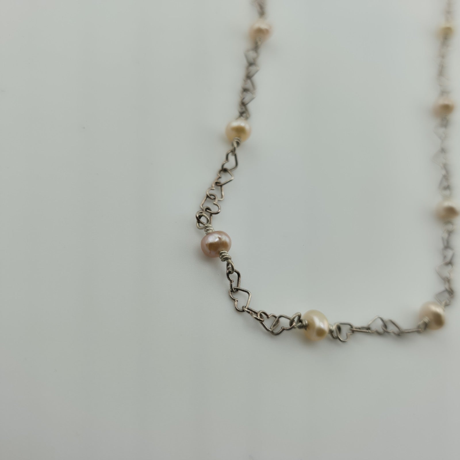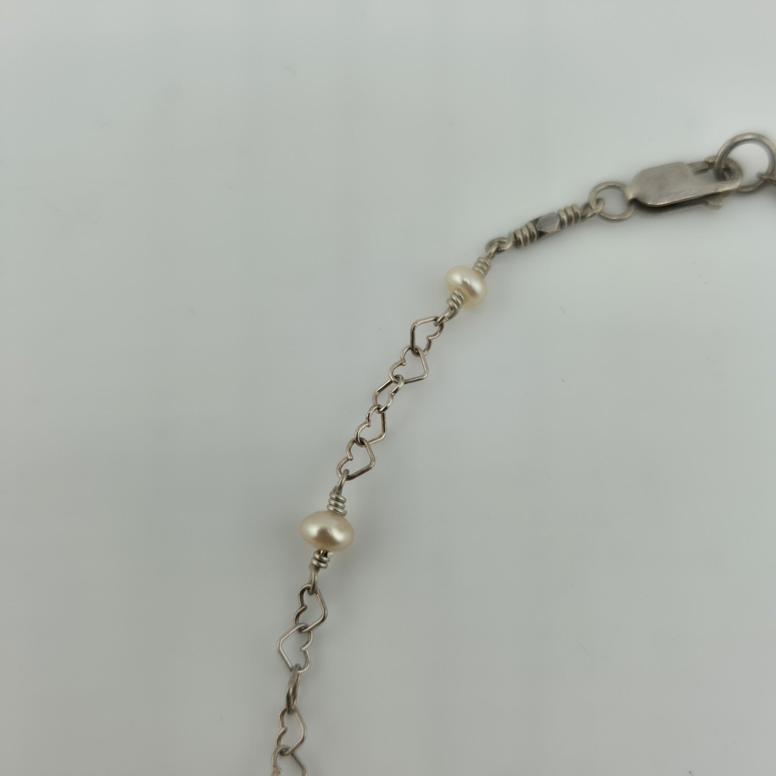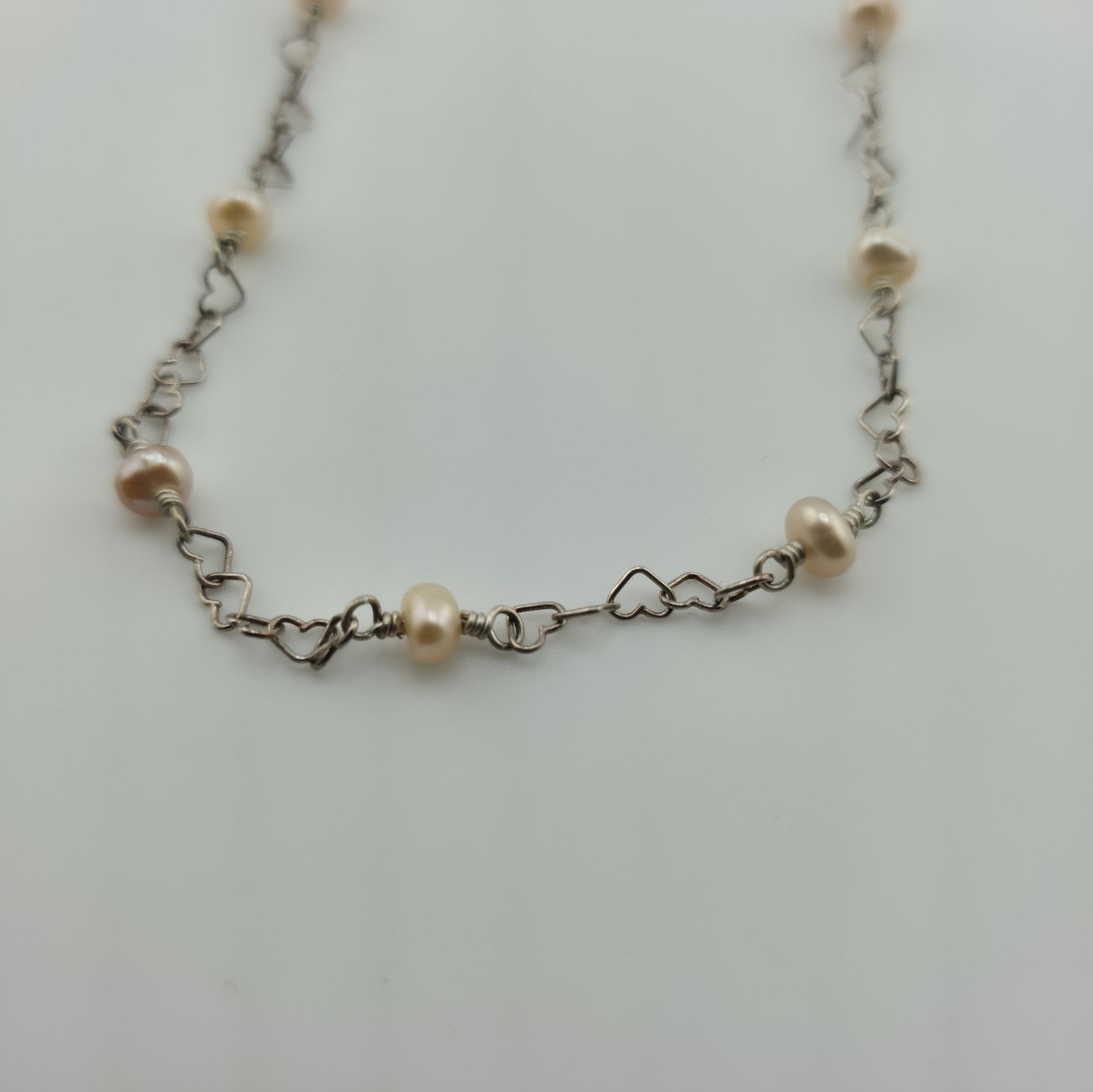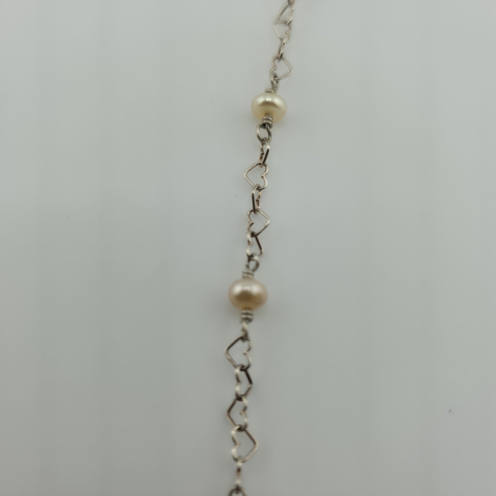 Type: Sterling Silver Necklace / Heart Link Chain / Pearl Jewelry / Gift for Her